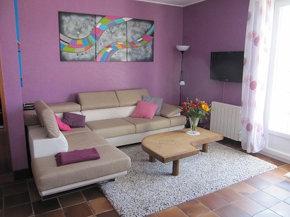 In de ruime woonkamer (50m2) staat een grote tafel geschikt om met 10 personen te tafelen.